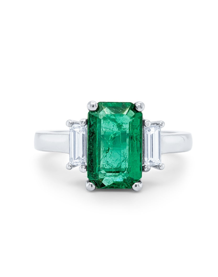 14k White Gold Diamond Emerald Ring