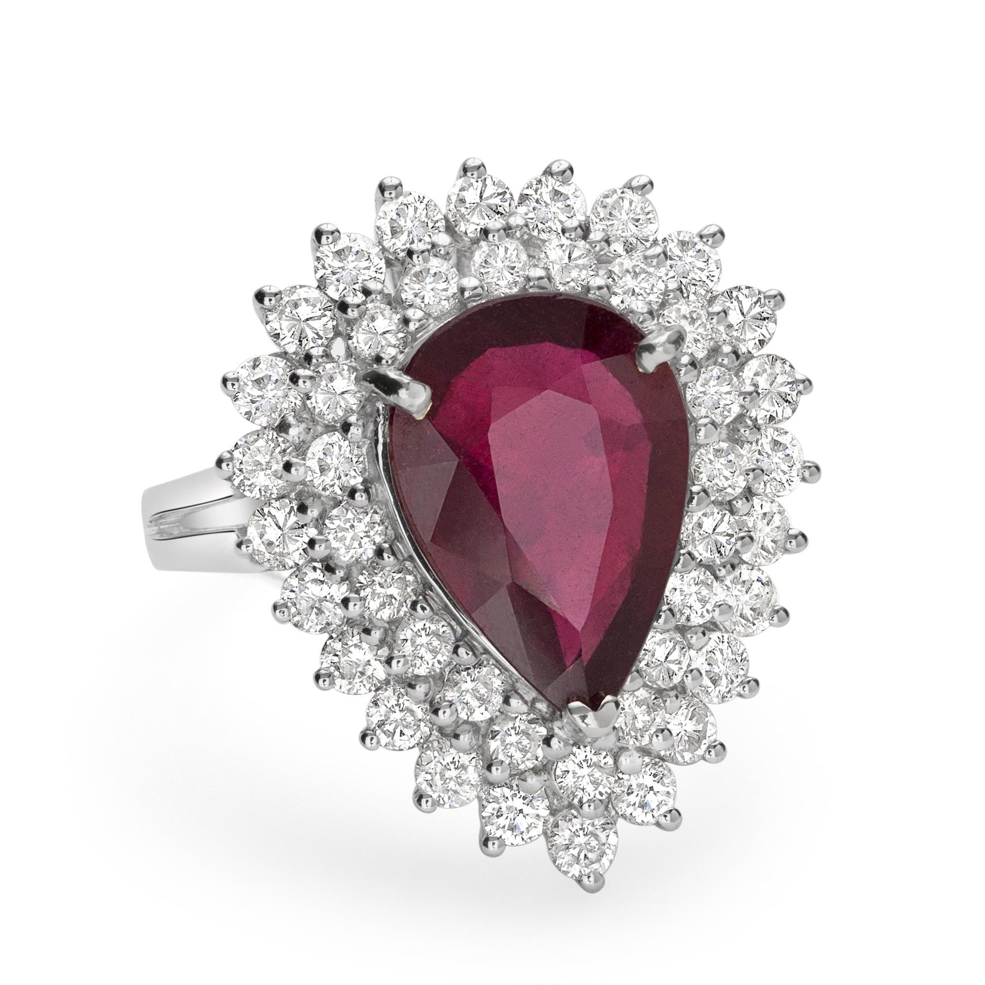 This Ring features in solid 14K white gold with 1.90Ct round diamonds and 4.10Ct center ruby.