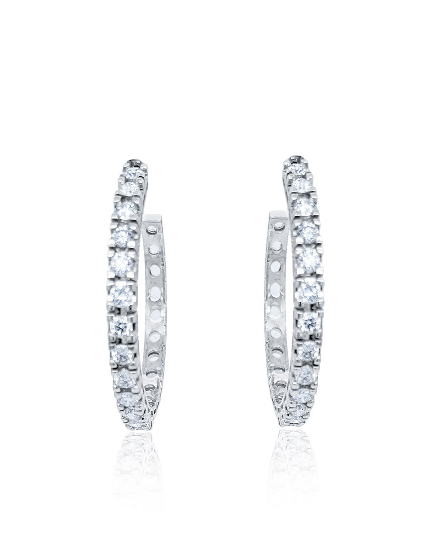 14k White Gold Hoop Diamond Earring