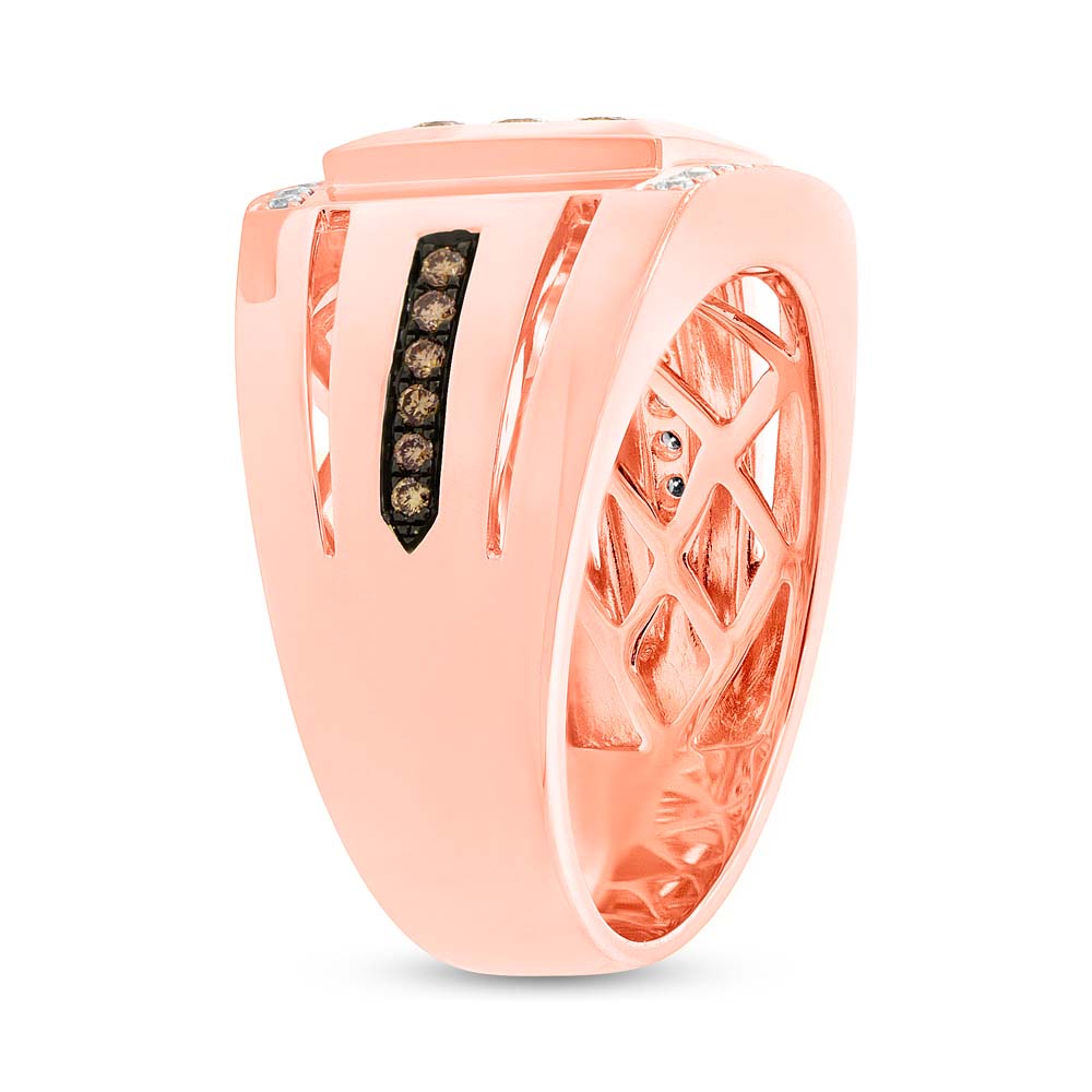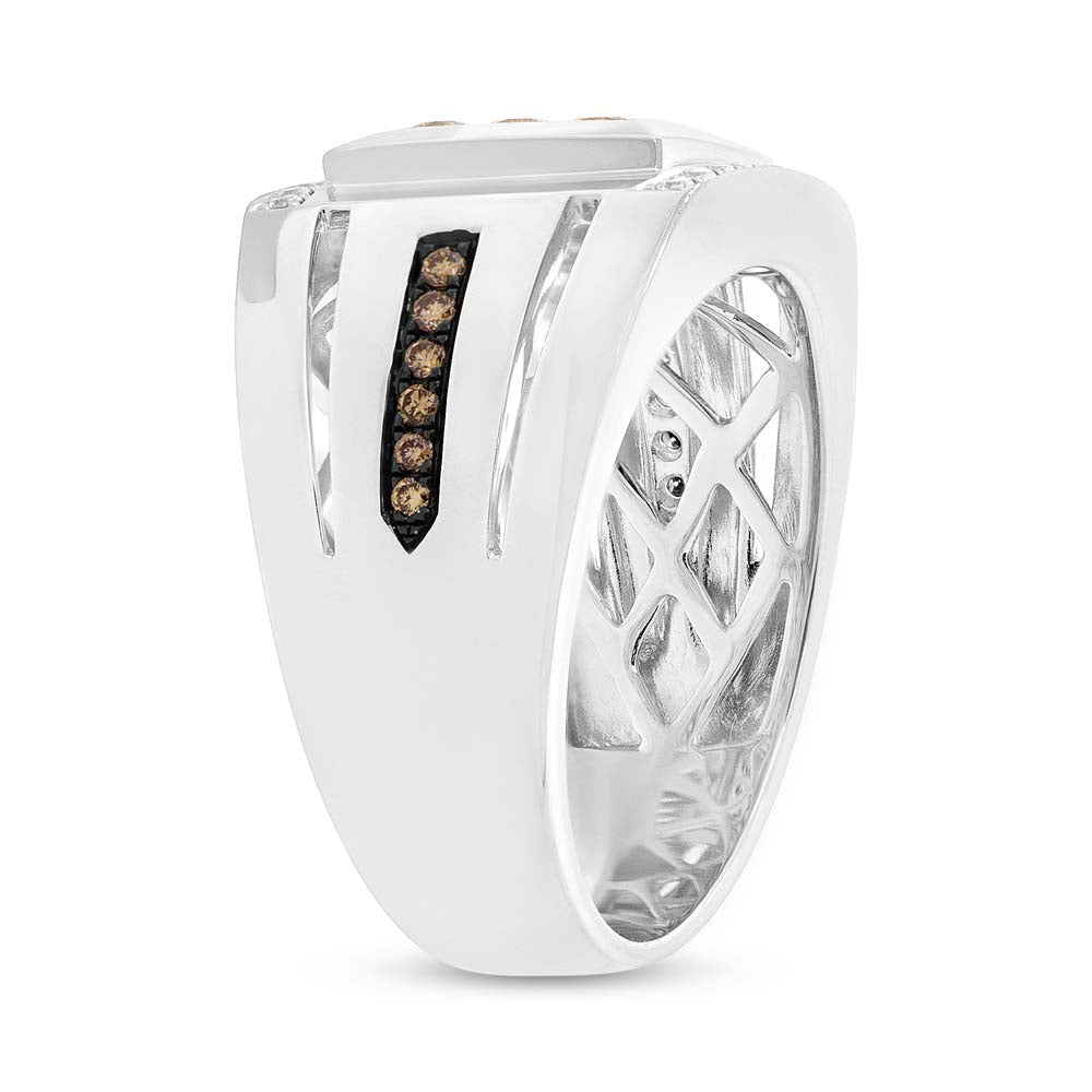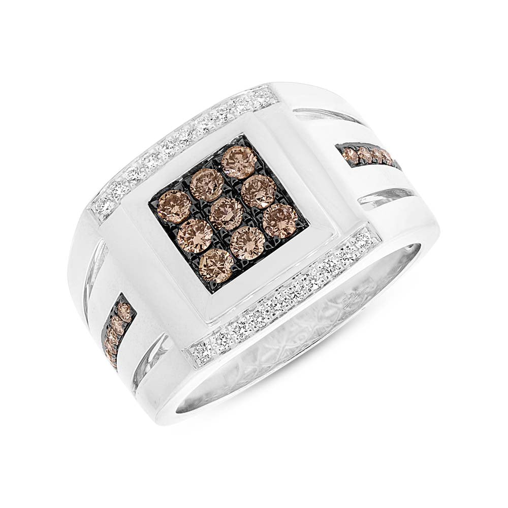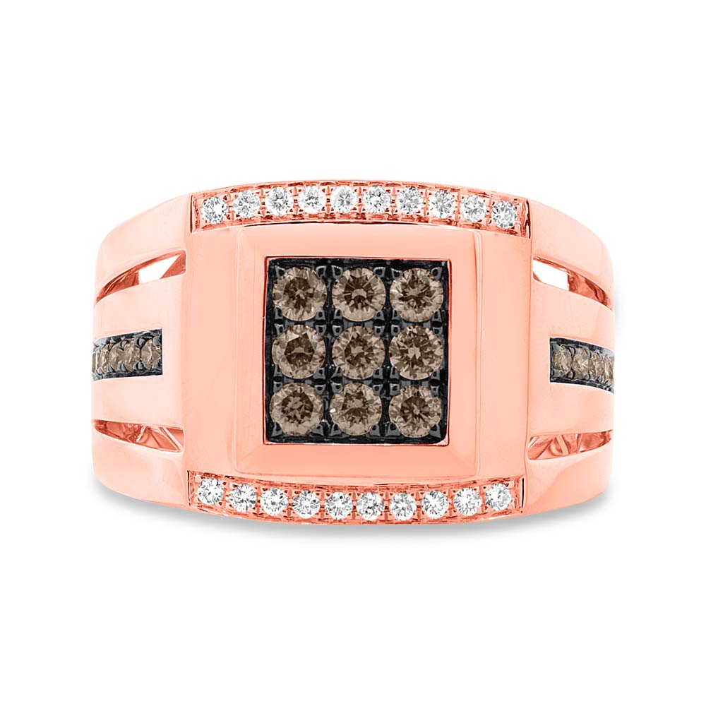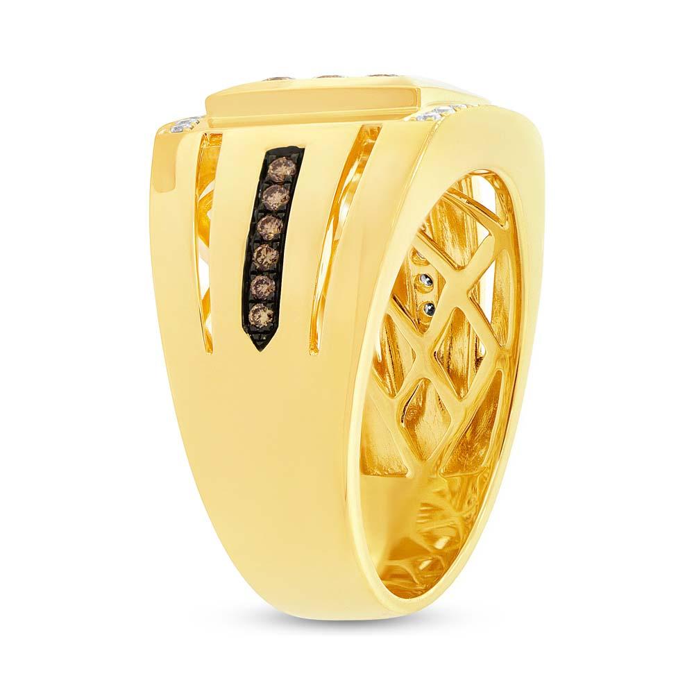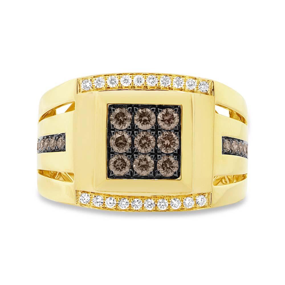 These Unique Champagne Diamond Men's Ring has 10.9Gr 14K Yellow Gold with 0.82Ct Champagne and White Diamonds.