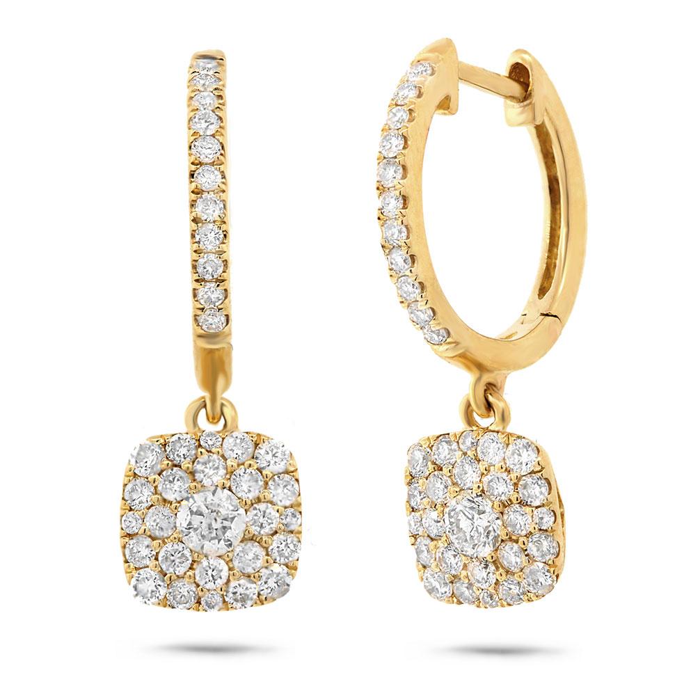 14k Yellow Gold Diamond Cluster Earring - 0.70ct