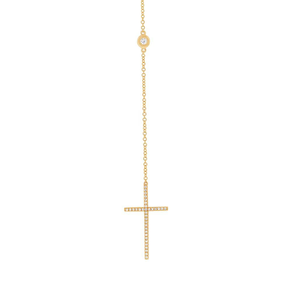 0.49ct 14k Yellow Gold Diamond Cross Lariat Necklace
