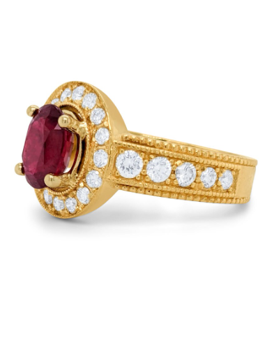 14k Yellow Gold Genuine Opaque Ruby Ring With Diamond For Women