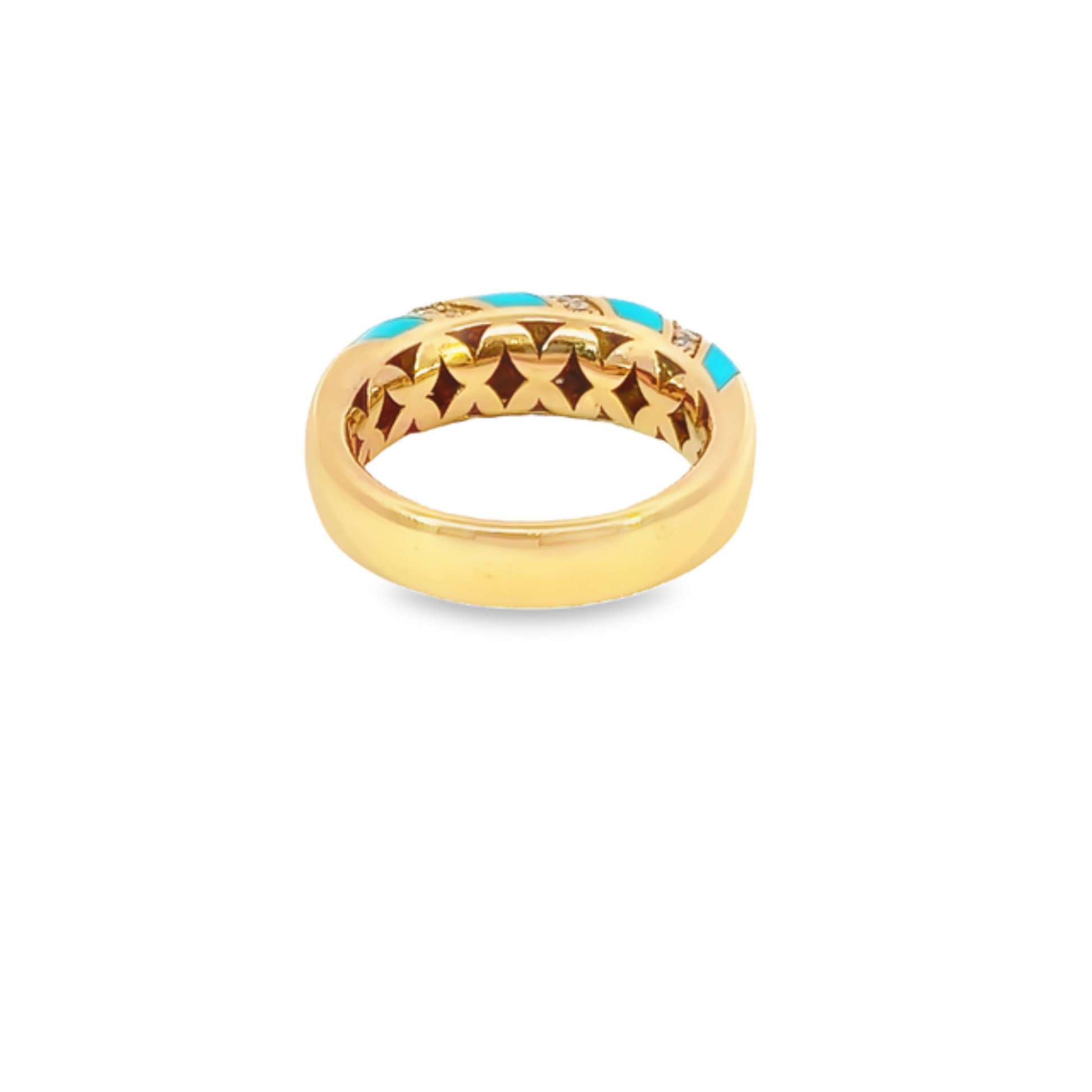 18k Rose Gold Diamond Round Cut Turquiose Stone Ring .35c