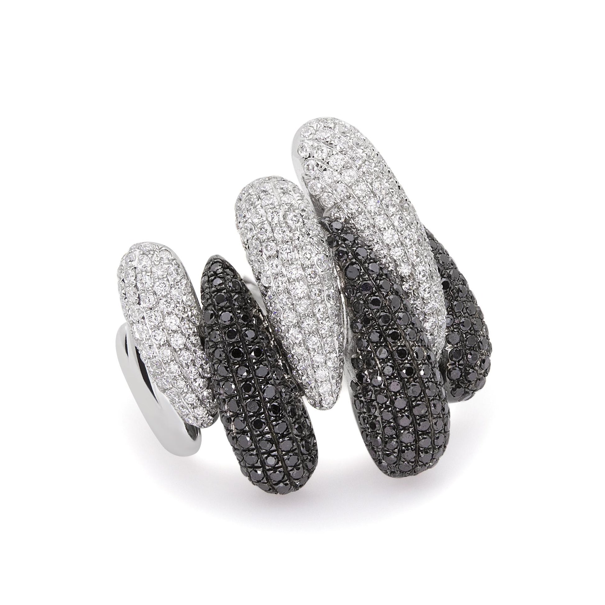Shop our exclusive collection of black and white Diamond. This Unique design Lady's Ring features 15Gr with 4.50Ct Black & White RoundDiamonds set in 18K White Gold.