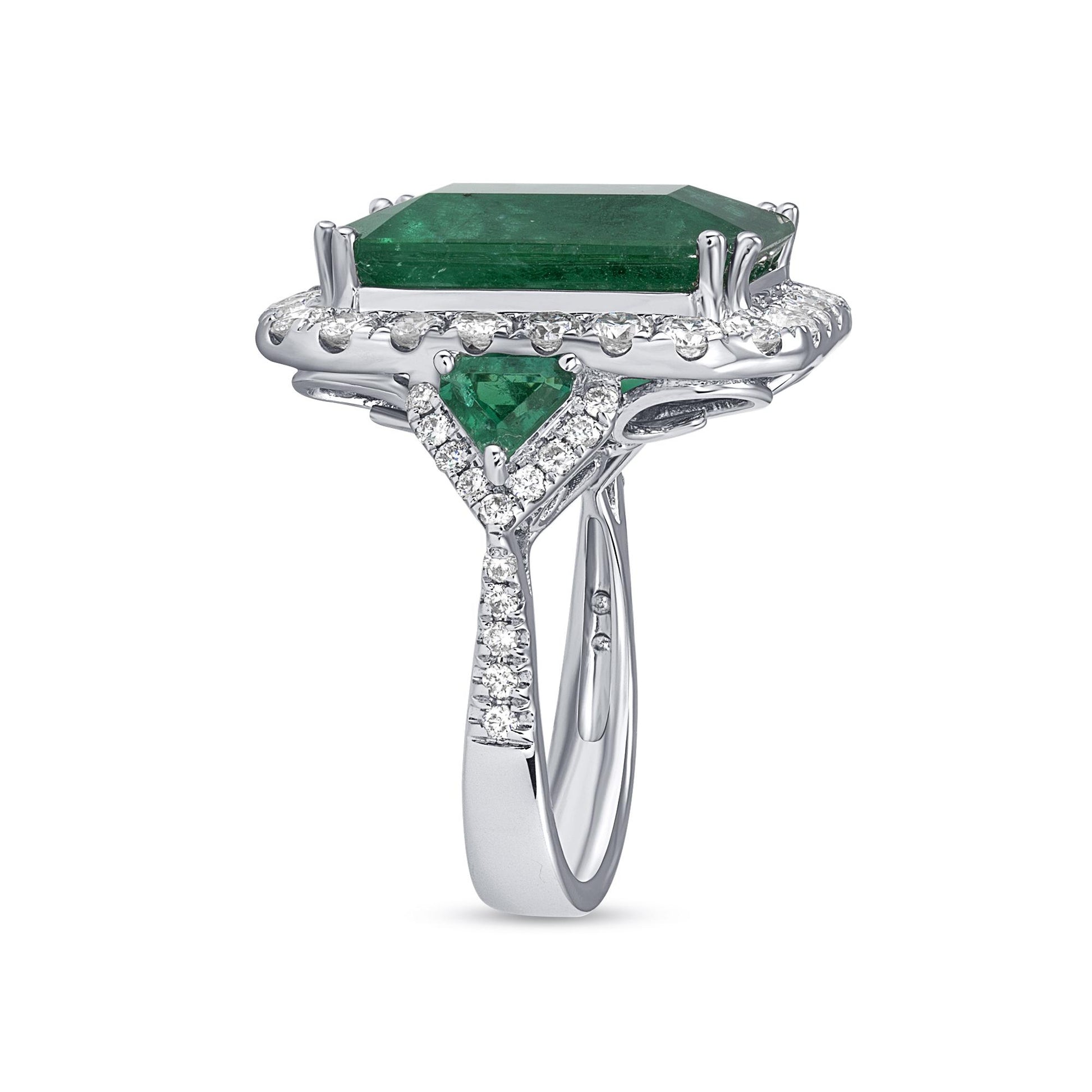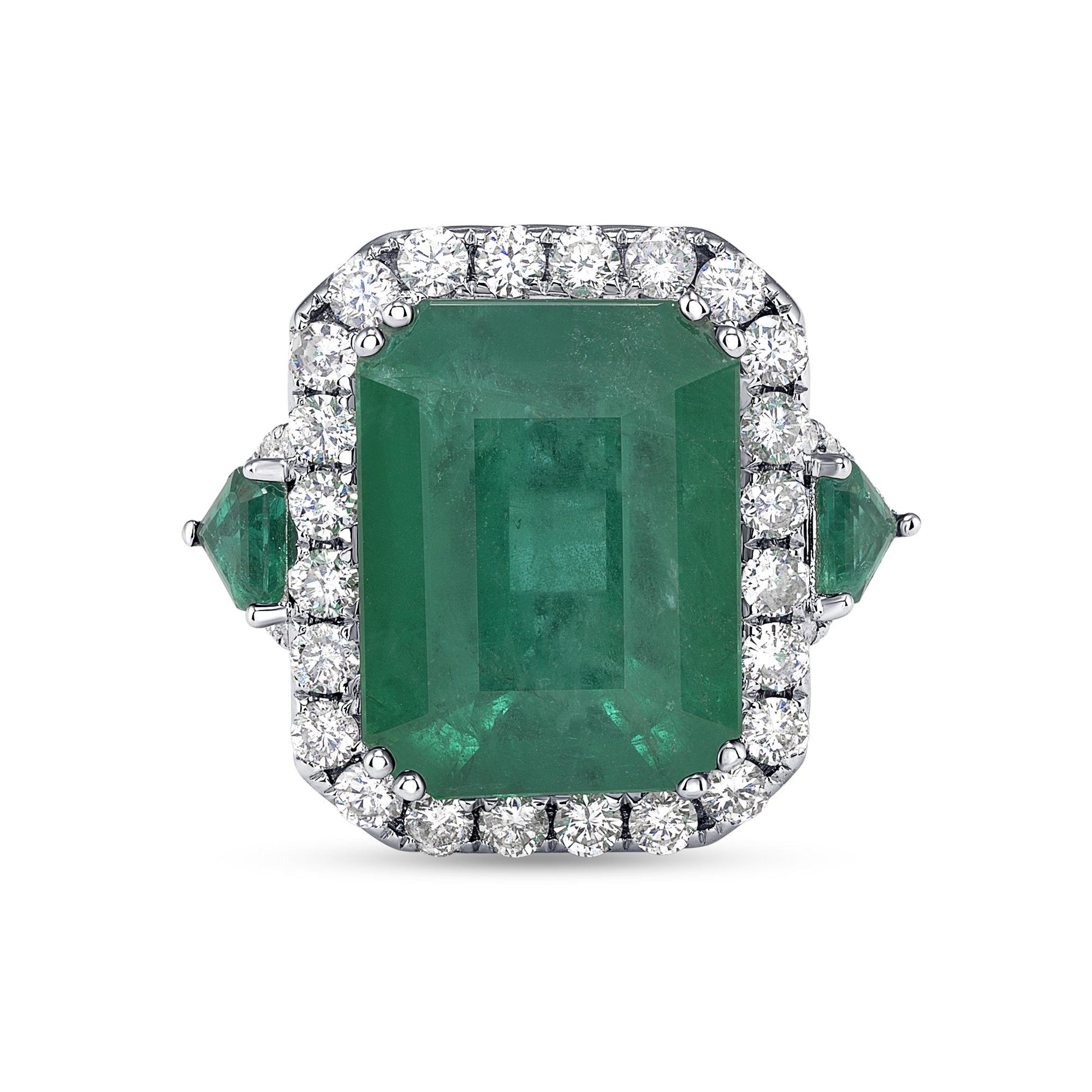 This Lady's Ring features 8.50Gr, with 11.80Ct Colombian Emeralds and 1.75Ct Round Diamonds Set in 18K White Gold.