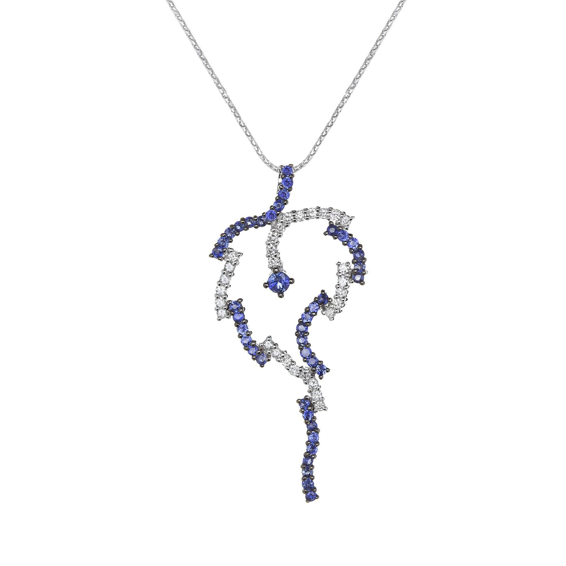 This Pendant features 6.40gr, with 0.99Ct Round Diamonds & 1.20Ct Blue Sapphires Sets in 18K White Gold .