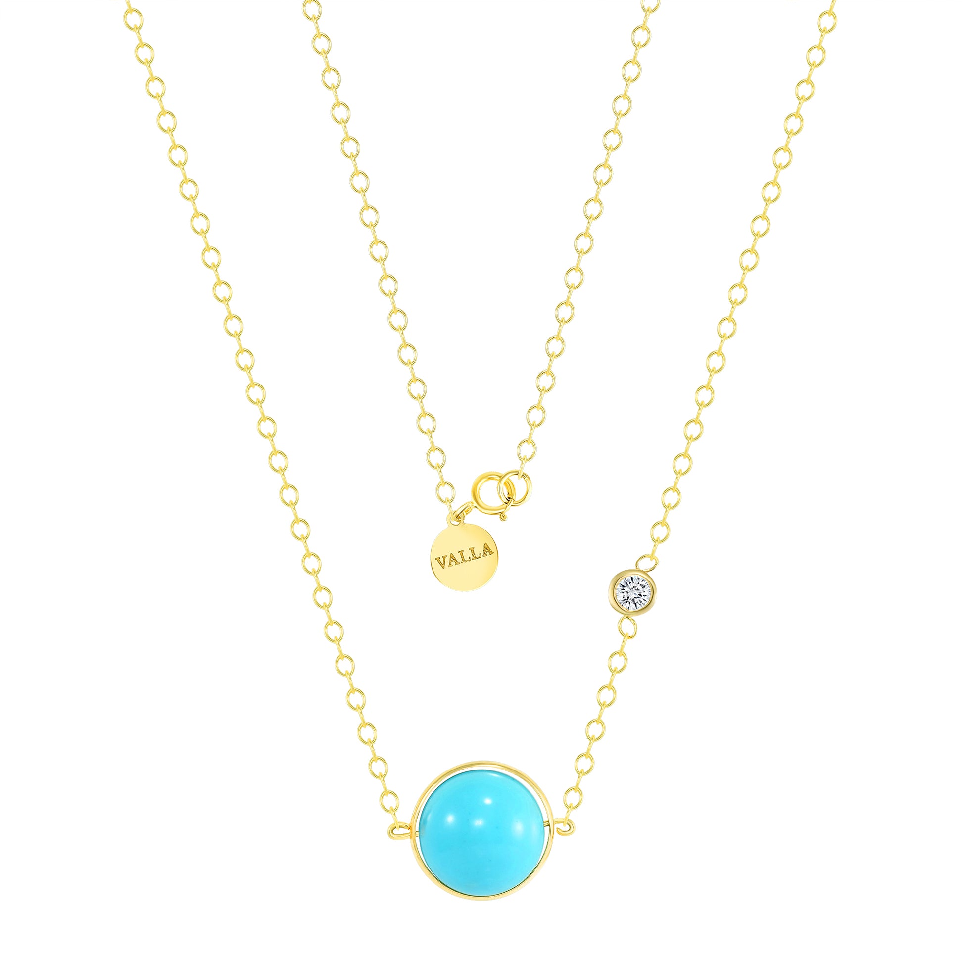 3.0 GRAMS YELLOW GOLD CASUAL AND CLASSY NECKLACE WITH ONE BEZEL 0.12CT. ROUND DIAMOND AND LOVELY COLOR TURQUOISE.