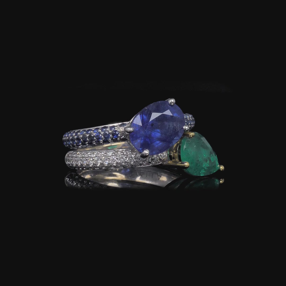 This Emerald and Sapphire Double Stone Ring for women is great for gifts for mom and brides maid jewelry. Even for Mother in Law gift. A minimalist ring that they will surely like. One of the best creation by Valla Jewelry on our diamond jewelry collection.