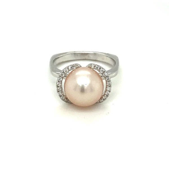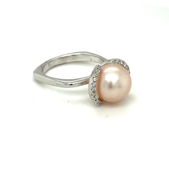 Freshwater Pearl & White Diamond Charming Modern Dainty Ring For Women