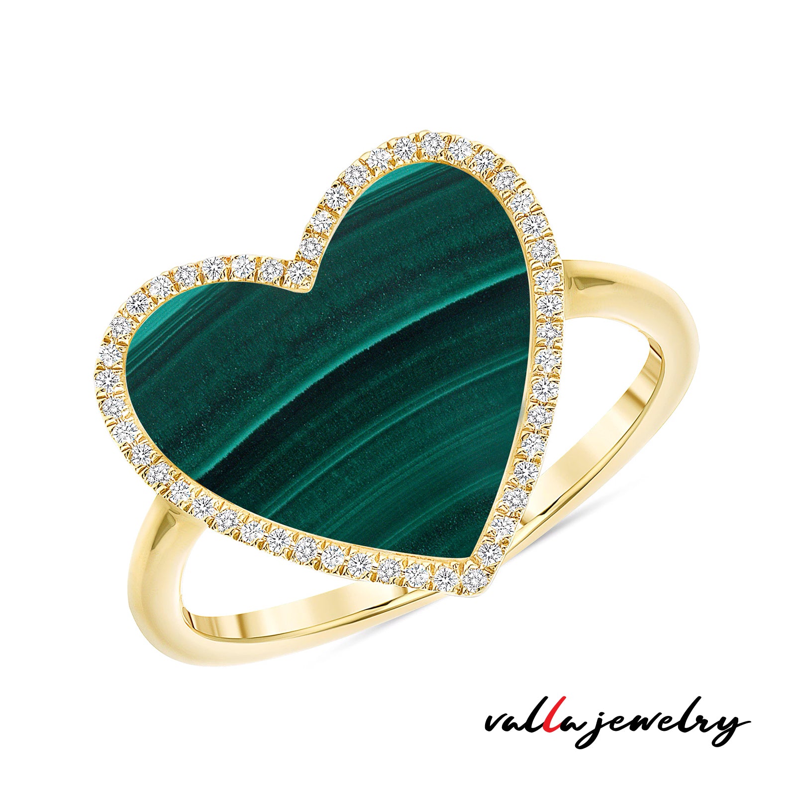 This Green Malachita Heart Ring for women is great for gifts for mom and brides maid jewelry. Even for Mother in Law gift. A minimalist ring that they will surely like. One of the best creation by Valla Jewelry on our diamond jewelry collection.