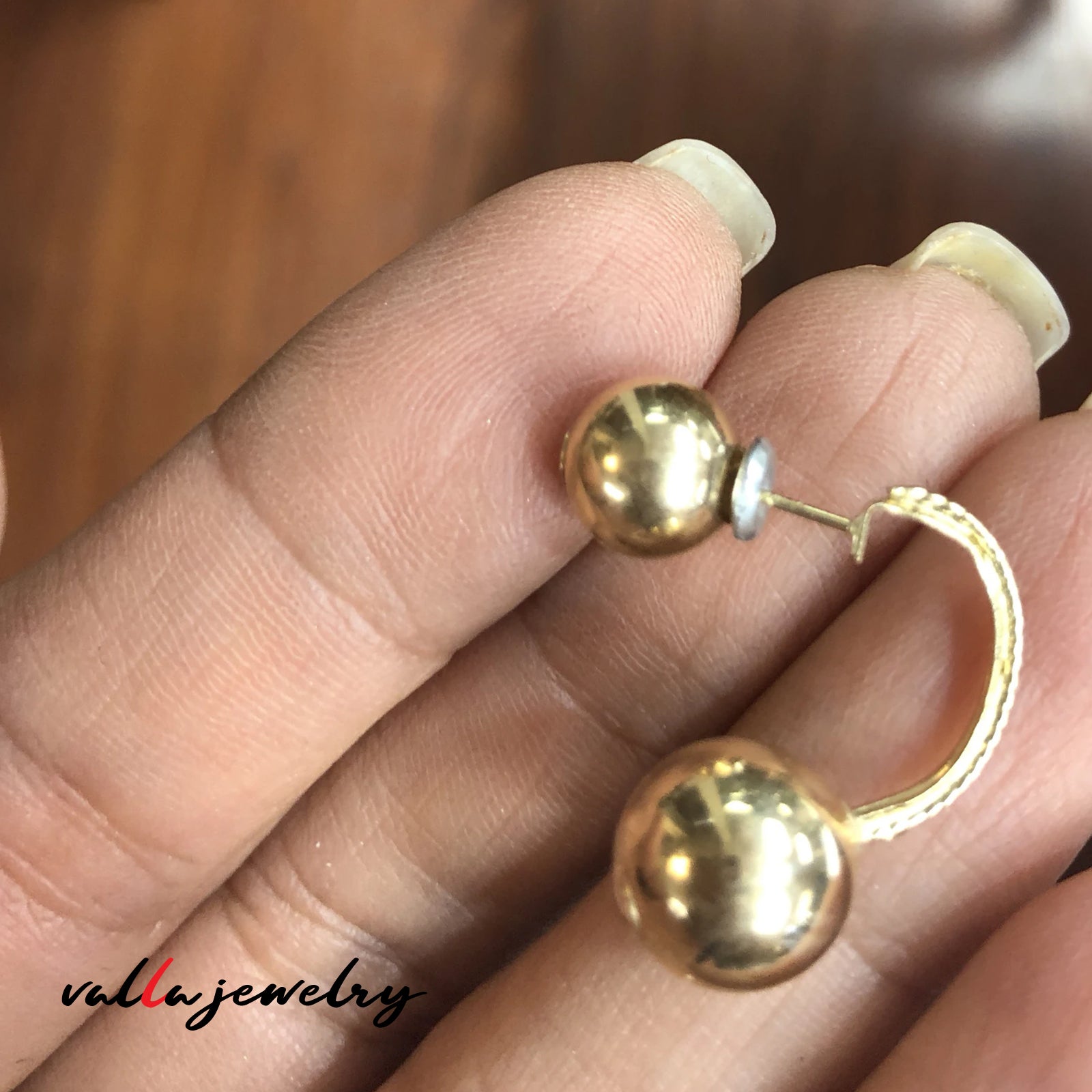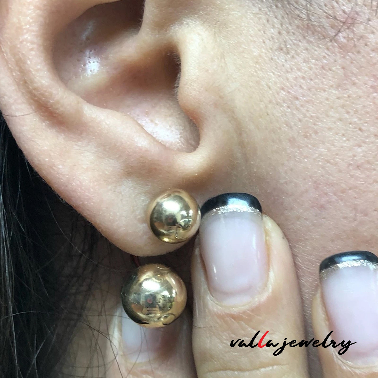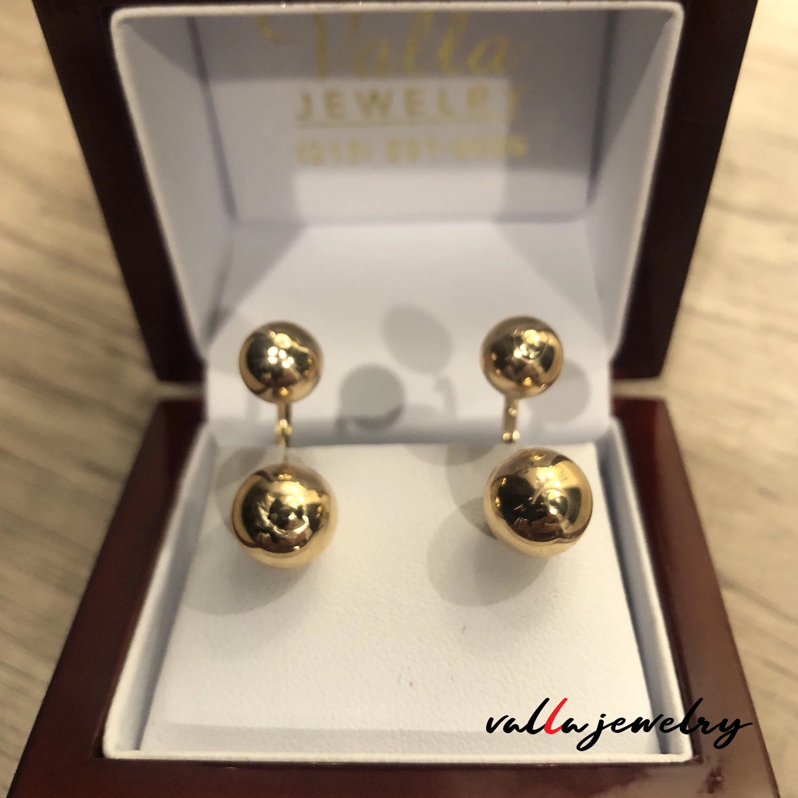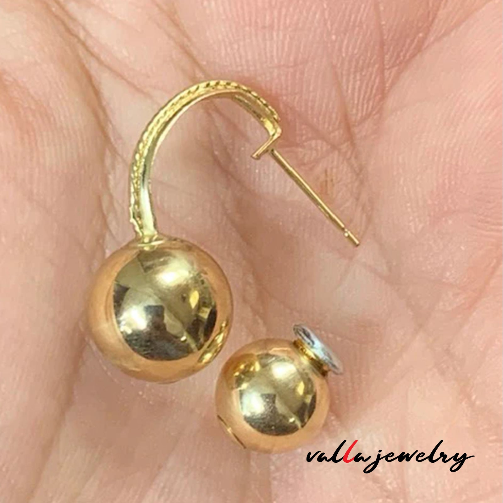 14k yellow gold ball earring with 2 ball at the top 8mm and 2 ball at the bottom 10mm.
