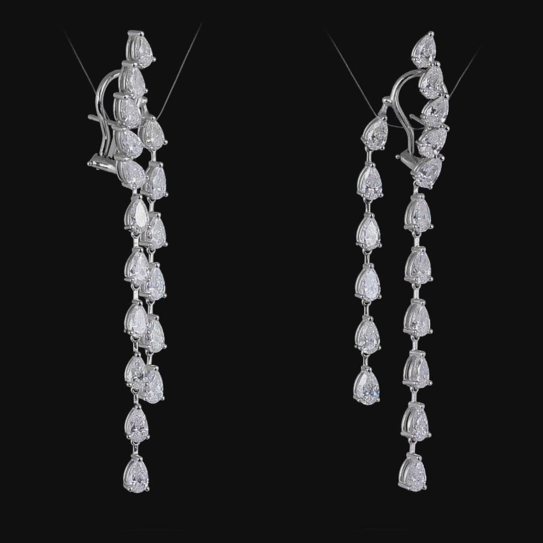 An Elegant Pear Shape Diamond Dangling Earrings with 34 pieces of 25pointer each Pear shape Diamond.