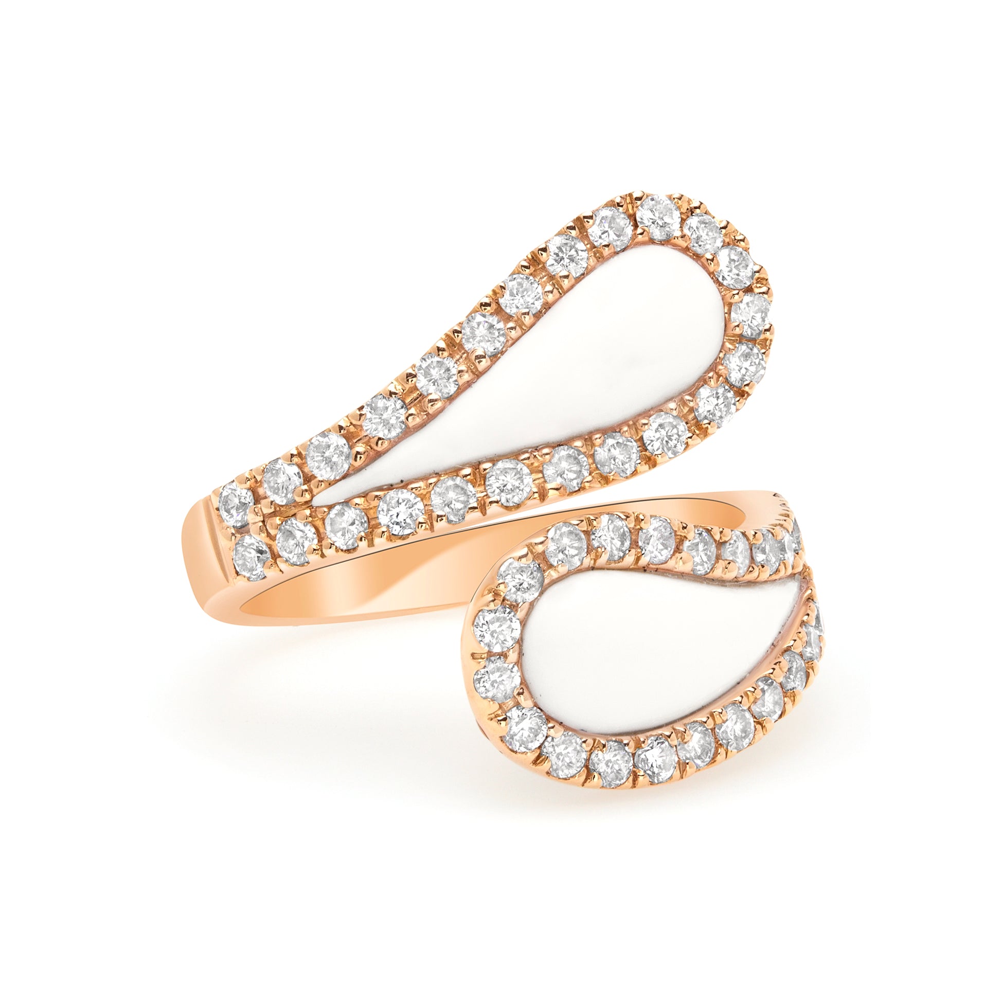 This Lady's Ring has 5.8Gr with 1.20Ct Round Diamonds and White Onyx set in 18K Rose Gold.